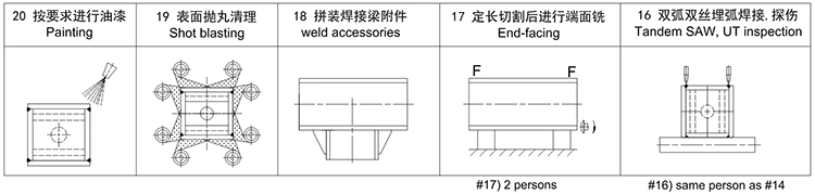 다음은 플레이트에서 H 빔 및 최종 검사까지 생산의 생산 흐름도입니다.